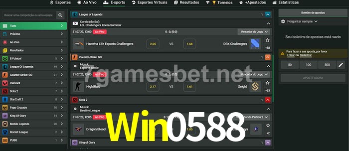 A aposta Win0588 oferece aos jogadores a experiência mais conveniente de apostas em eSports!